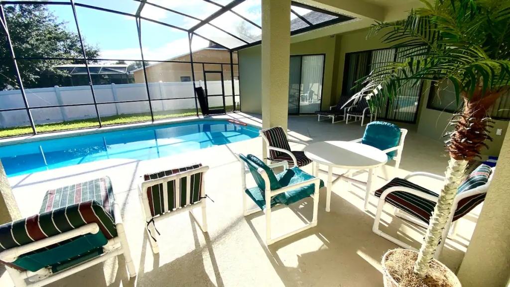 Beautiful 4 bedrooms, 3 bathrooms, 11 sleeps, 3 minimum stay House for rent in Davenport Florida with the amenities and near by attractions , Air Conditioning, Free WiFi, Full Kitchen, Heating, Internet, No Pets Allowed, Private Pool, Towels Provided, Washing Machine, Kitchen, Fire extinguisher, No Smoking, No parties/events, Smoke detector, Microwave, DVD Player, Outdoor Grill, Ceiling Fans, Freezer, Oven, Toaster, Hair Dryer , Refrigerator, Washer/Dryer , Iron & Board , Stove, Dishwasher, First-aid kit, Basic Soaps, Toilet Paper, Kettle, Hangers, Air Conditioning, Free WiFi, Full Kitchen, Heating, Internet, No Pets Allowed, Private Pool, Towels Provided, Washing Machine, Kitchen, Fire extinguisher, No Smoking, No parties/events, Smoke detector, Microwave, DVD Player, Outdoor Grill, Ceiling Fans, Freezer, Oven, Toaster, Hair Dryer , Refrigerator, Washer/Dryer , Iron & Board , Stove, Dishwasher, First-aid kit, Basic Soaps, Toilet Paper, Kettle, Hangers, Air Conditioning, Free WiFi, Full Kitchen, Heating, Internet, No Pets Allowed, Private Pool, Towels Provided, Washing Machine, Kitchen, Fire extinguisher, No Smoking, No parties/events, Smoke detector, Microwave, DVD Player, Outdoor Grill, Ceiling Fans, Freezer, Oven, Toaster, Hair Dryer , Refrigerator, Washer/Dryer , Iron & Board , Stove, Dishwasher, First-aid kit, Basic Soaps, Toilet Paper, Kettle, HangersDedicated workspace, Security cameras on property, Wifi, Free parking on premises, 55" HDTV with Roku, DVD player, Pool view, Cleaning products, Hot water, bed sheets, Bed linen, Extra pillows and blankets, Room-darkening shades, Clothes drying rack, Clothes storage: wardrobe, Ethernet connection, Books and reading material, Travel cot, Childrens books and toys for ages 5–10 years old, Folding or convertible high chair, Baby safety gates, Portable fans, Security cameras on property, Wifi, Dedicated workspace, Cooking basics(Pots and pans- oil- salt and pepper), Dishes and silverware(Bowls- chopsticks- plates- cups etc.), Coffee maker: Keurig coffee machine, Wine glasses, Baking sheet, Barbecue utensils(Grill- charcoal- bamboo skewers/iron skewers etc.), Dining table, Private back garden, Outdoor dining area, Free parking on premises, Single level home, Long-term stays allowed(Allow stays of 28 days or more), Self check-in, Lockbox, Cleaning before checkout