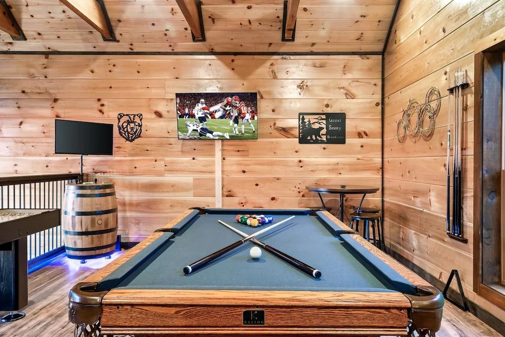Beautiful 3 bedrooms, 3 bathrooms, 8 sleeps, 1 minimum stay Cabin for rent in Gatlinburg Tennessee with the amenities and near by attractions , Air Conditioning, Carbon-monoxide detector, Communal Pool, Exterior lighting, Fire extinguisher, Fireplace, Fitness Room , Free WiFi, Game Room, Heating, Hot Tub, Internet, Kitchen, Linens Provided, Mountain View, No parties/events, No Pets Allowed, No Smoking, Parking, Pool Table, Smoke detector, Swimming pool, Towels Provided, Washing Machine, Wireless Internet, Clothes Dryer, Coffee Maker , Dining Area, Dishes & Utensils, Dishwasher, First-aid kit, Hair Dryer , Heater, Ice Maker, Iron & Board , Microwave, Outdoor Grill, Oven, Refrigerator, Stove, Television, Toaster, Washer/Dryer , Air Conditioning, Carbon-monoxide detector, Communal Pool, Exterior lighting, Fire extinguisher, Fireplace, Fitness Room , Free WiFi, Game Room, Heating, Hot Tub, Internet, Kitchen, Linens Provided, Mountain View, No parties/events, No Pets Allowed, No Smoking, Parking, Pool Table, Smoke detector, Swimming pool, Towels Provided, Washing Machine, Wireless Internet, Clothes Dryer, Coffee Maker , Dining Area, Dishes & Utensils, Dishwasher, First-aid kit, Hair Dryer , Heater, Ice Maker, Iron & Board , Microwave, Outdoor Grill, Oven, Refrigerator, Stove, Television, Toaster, Washer/Dryer , Air Conditioning, Carbon-monoxide detector, Communal Pool, Exterior lighting, Fire extinguisher, Fireplace, Fitness Room , Free WiFi, Game Room, Heating, Hot Tub, Internet, Kitchen, Linens Provided, Mountain View, No parties/events, No Pets Allowed, No Smoking, Parking, Pool Table, Smoke detector, Swimming pool, Towels Provided, Washing Machine, Wireless Internet, Clothes Dryer, Coffee Maker , Dining Area, Dishes & Utensils, Dishwasher, First-aid kit, Hair Dryer , Heater, Ice Maker, Iron & Board , Microwave, Outdoor Grill, Oven, Refrigerator, Stove, Television, Toaster, Washer/Dryer Books for kids, Pantry Items, Dining table, Kitchen island, Spa whirlpool, Tennis, Video Games, Books, Music Library, Smart TV, Deadbolt lock, Emergency exit route, Mountain
