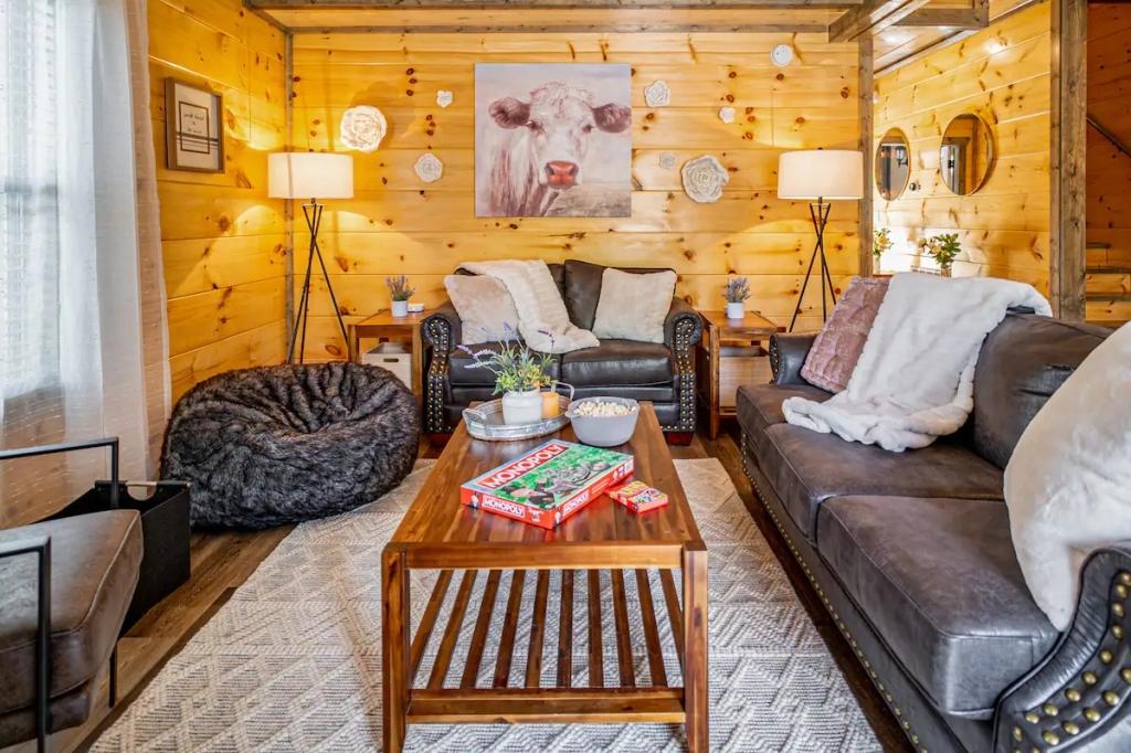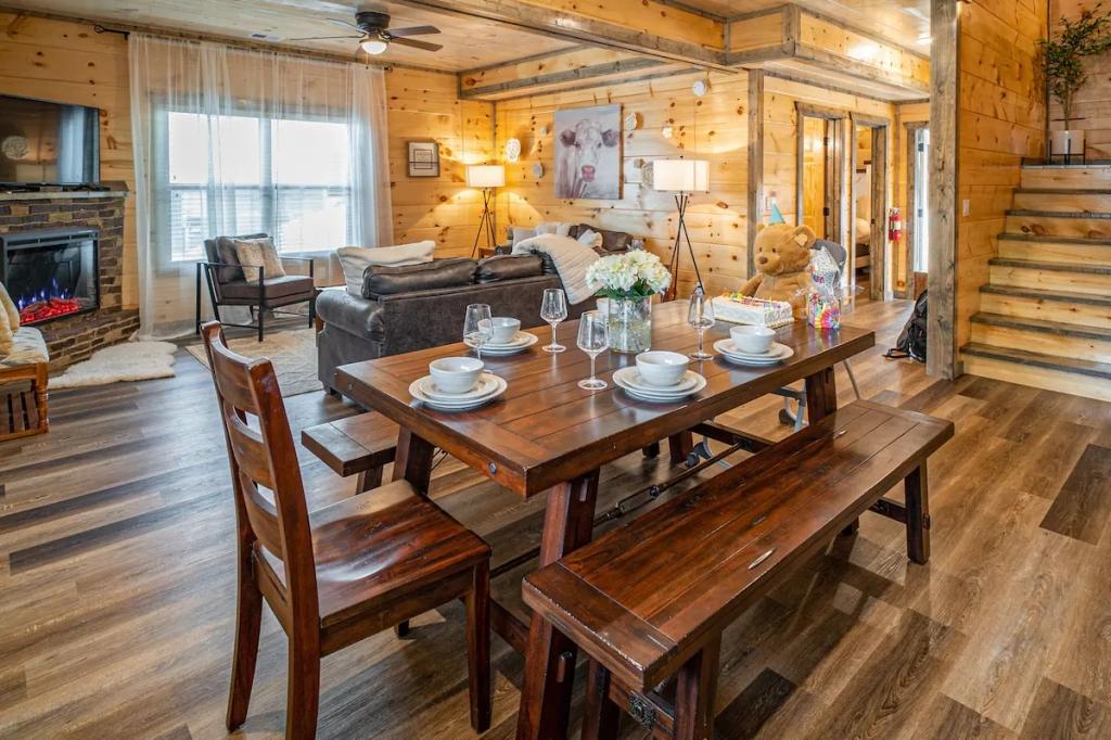 Beautiful 4 bedrooms, 3 bathrooms, 10 sleeps, 1 minimum stay Cabin for rent in Sevierville Tennessee with the amenities and near by attractions , Fire extinguisher, Free WiFi, Hot Tub, Kitchen, Mountain View, Parking, Blender, Ceiling Fans, Coffee Maker , Dishwasher, First-aid kit, Freezer, Hair Dryer , Hangers, Microwave, Oven, Refrigerator, Shampoo, Toaster, Fire extinguisher, Free WiFi, Hot Tub, Kitchen, Mountain View, Parking, Blender, Ceiling Fans, Coffee Maker , Dishwasher, First-aid kit, Freezer, Hair Dryer , Hangers, Microwave, Oven, Refrigerator, Shampoo, Toaster, Fire extinguisher, Free WiFi, Hot Tub, Kitchen, Mountain View, Parking, Blender, Ceiling Fans, Coffee Maker , Dishwasher, First-aid kit, Freezer, Hair Dryer , Hangers, Microwave, Oven, Refrigerator, Shampoo, ToasterCleaning products, Conditioner, Dove body soap, Hot water, Free washer – In unit, Free dryer – In unit, Towels, bed sheets, soap and toilet paper, Bed linen, Extra pillows and blankets, Room-darkening shades, Iron, Safe, Clothes storage: chest of drawers and wardrobe, Ethernet connection, 40" HDTV with Apple TV, Cot, Travel cot – available upon request, High chair, Baby bath, Central air conditioning, Indoor fireplace: electric, Central heating, Security cameras on property, Smoke alarm, Carbon monoxide alarm, Pots and pans, oil, salt and pepper, Dishes and silverware, Electric cooker, Baking sheet, Barbecue utensils, Coffee, Dining table, Private entrance, Private patio or balcony, Outdoor furniture, BBQ grill: charcoal, gas
