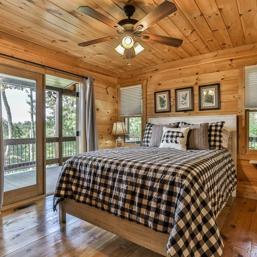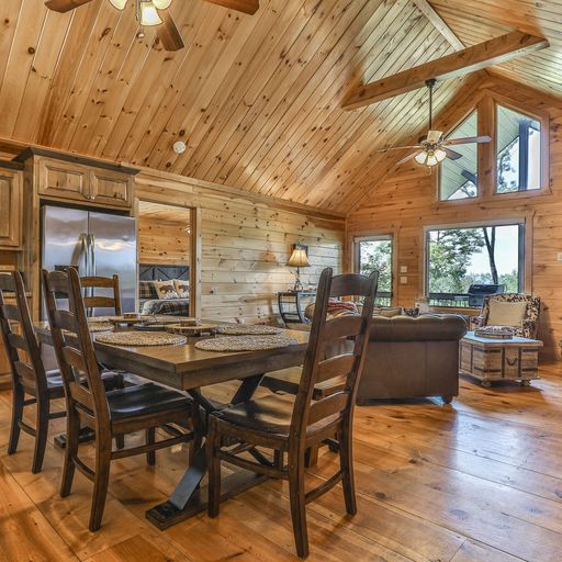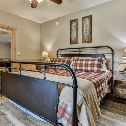 The road to Fallen Leaf is an easy drive on a paved road, with a small gravel portion before you reach the paved driveway. The cabin has WiFi, ceiling fans in all rooms, and is pet-friendly, so you can feel free to bring your dog to enjoy the calm, quiet and carefree fun of your one-of-a-kind mountain cabin getaway.