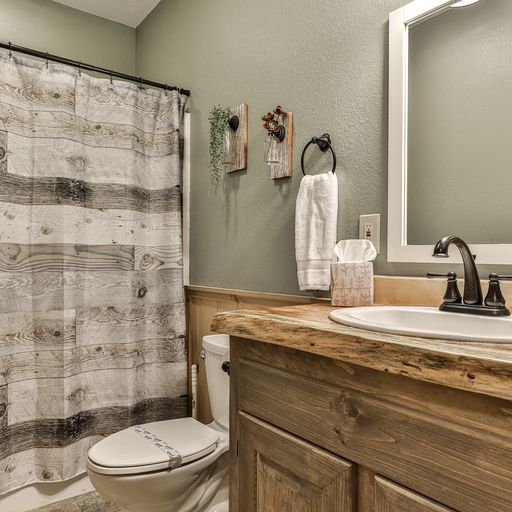 Bathrooms - main level master bath, walk-in shower, vanity; second main level bath, tub/shower combo, vanity; downstairs bath, tub/shower combo, vanity